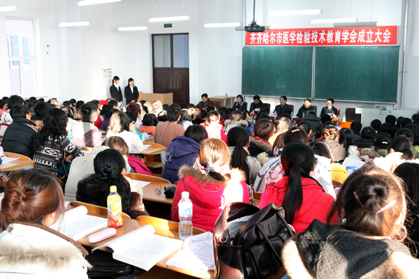 会上,全体会员一致通过了《医学检验技术教育学会章程》及第一届理事会理事长、副理事长和秘书长人员名单。学会新任副理事长、医学技术学院党总支副书记、院长张淑丽作了关于《成立齐齐哈尔市医学检验技术教育学会筹备工作》报告。新当选的理事长、附属二院检验科主任张迎春教授作工作报告。学院党委副书记姜连清及市科学技术协会副主席肖跃军分别在会上对学会成立表示祝贺并对学会发展提出希望。