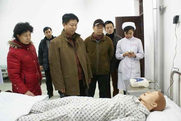 学院副院长崔光成陪同哈尔滨市口腔医院领导一行参观护理实验中心