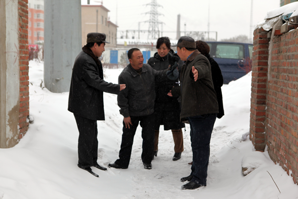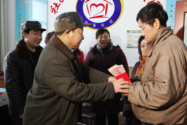 迎着漫天飞舞的雪花、冒着零下20多度的严寒,12月25日下午,学院党委书记邱福利亲自带队率宣传部部长王彬、副部长李迎新等同志来到西大桥街道三北和畜牧场社区,看望我院五户帮扶对象并为他们分别送上了500元慰问金,帮助他们度过一个祥和温暖的元旦。
