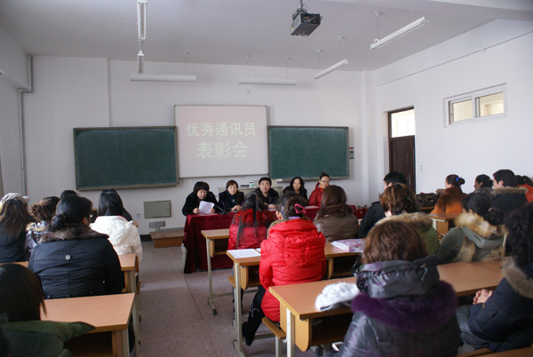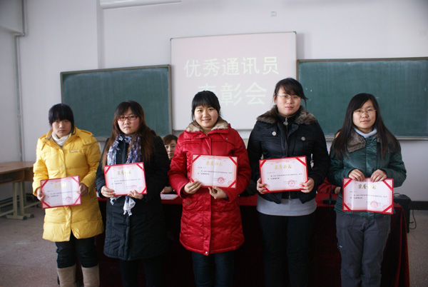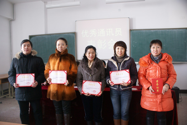 12月30日下午,学院党委宣传部组织召开了2009年度优秀通讯员表彰会。会上,宣传部部长王彬、副部长李迎新、现代教育技术中心副主任张淑玮、团委副书记马倩等为张宝林等15位教师和姜海娇等15名同学颁发了“优秀通讯员”荣誉证书,以表彰他们为学院的新闻宣传工作做出的积极贡献,并鼓励和带动更多的师生员工投身于新闻宣传工作,扩大学院的知名度和影响力,共同营造健康向上的舆论氛围。