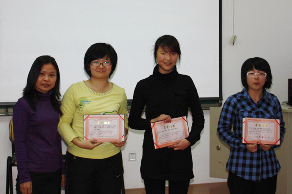 比赛当日,共有十余个短剧参赛,其中大部分剧本为学生原创,学生们的表演更是精彩纷呈,显示了较高的英文写作能力和口语对话水平。经过激烈角逐,一等奖由冯小蕾老师指导的2008级9、10实验班许超、王雪馨等表演的《孔雀东南飞》(Peacocks Fly Southeast)和陈阳老师指导的2008级公共卫生事业管理学生梁国强、陈微等表演的短剧《一个商人的沉浮》(A Businessman’s Up and Down)摘得, 其它参赛短剧分获二、三等奖。