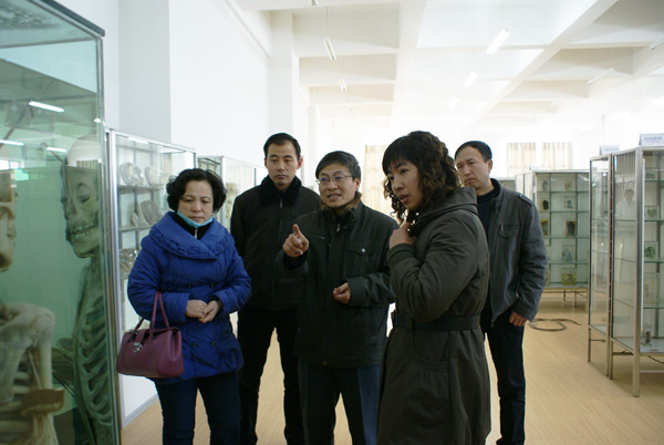 为贯彻落实《中华人民共和国科学技术普及法》、《全民科学素质行动计划纲要》以及国家推动科普基础设施发展的有关规定,3月19日上午,市科协副主席朱雨苓、普及部副部长顾忠军等一行4人莅临我院检查指导工作,并对我院国家级及省级科普教育基地进行综合评估。在听取学院微形态实验室主任刘婷和医药研究所所长牛英才作的工作汇报后,朱雨苓主席一行对我院开展的科普活动及取得的成绩给予充分肯定,并从加大宣传、面向开放人群等方面对今后工作提出了宝贵建议。会后,朱雨苓主席一行在科技处处长李静平的陪同下实地走访了形态学标本陈列馆。