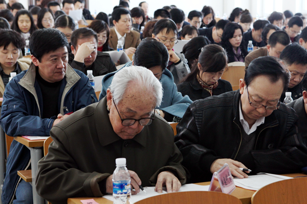 报告以翔实的数据客观展示了学院两年来取得的巨大成就:一是不断深化教育教学改革,积极推进教育教学质量工程,圆满完成评建整改工作,进一步强化教学工作中心地位;二是更新办院理念,明确发展定位,着力推进附属医院规模化建设步伐,实现社会效益、经济效益双丰收;三是以“申硕”工作为导向,加快学科建设步伐,加大科研投入力度,科研水平不断提高;四是创新人才管理模式,加大人才培训力度,师资队伍建设取得显著成果;五是做好学生工作,全面提升学生素质;六是以新校区建设为契机,积极推进三型校园建设;七是加强行政管理,强化安全意识,各项工作不断进步。在看到成绩的同时,刘院长还指出了学院发展面临的挑战:管理干部的素养、能力和专业人员的业务水平需不断提高,科学管理和改革创新意识还有待加强;教风、学风还需进一步加强。人才培养模式、教学方法的改革需进一步深化,学生的考研率、外语过级率、各种执业资格考试通过率、就业率等需进一步提高;拔尖人才、知名学者甚少,高水平课题、高层次获奖数量很少,成果转化和产业化能力十分薄弱;附属医院的科研意识急需加强,特色专科的优势还不明显,诊疗疑难病症的水平还需大幅度提高等。