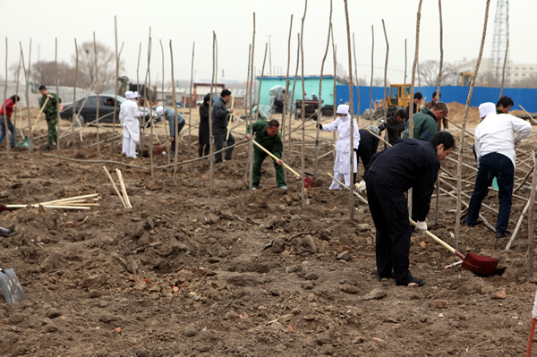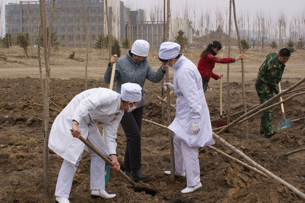 4月26日,总务处全体员工在处长李春旭带领下,利用午休时间种植柳树200余棵。同时,每位员工将通过认养方式,负责在节假日等休息时间亲自浇灌、培土、除草,对树木进行精心呵护,为迎接校庆65周年献上一份绿色环保的礼物。