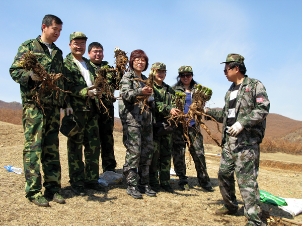 五·一放假期间,院长刘吉成教授带领国家平台项目课题组成员李莉、郭丽娜、王晓丽、孙辑凯前往龙江县龙兴镇德胜林场和海洋林场,进行采挖药材与移栽药用植物。经过三天的努力,采挖狼毒大戟、兴安杜鹃、卷柏、马勃等共计600余株。现已将药材部分转交至我院药物化学及生物大分子研究室进行抗癌活性成分研究;另一部分原植物被药学院中药标本馆作为标本储藏;其余原植物则全部作为种质活标本,被移栽至校园书山上,以满足教学、科研及绿化校园的多方需求。同时,课题组还特邀市卫生局中药资深专家曹永文局长、市医政科王丽科长、市药品检验所李辉所长、康复药材有限公司张凯经理等一同前往采药,并与专家进行了现场交流。
