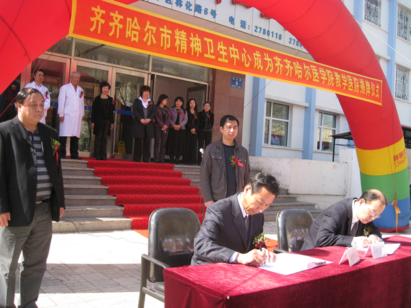 5月8日上午,崔光成副院长率教务处、精神卫生学院、附属第四医院领导等一行7人,参加了齐市精神卫生中心成为我院教学医院的挂牌签约仪式。齐市卫生局副局长程丽敏、齐市第一医院院长曹书杰、齐市精神卫生中心领导班子及员工参加了仪式。