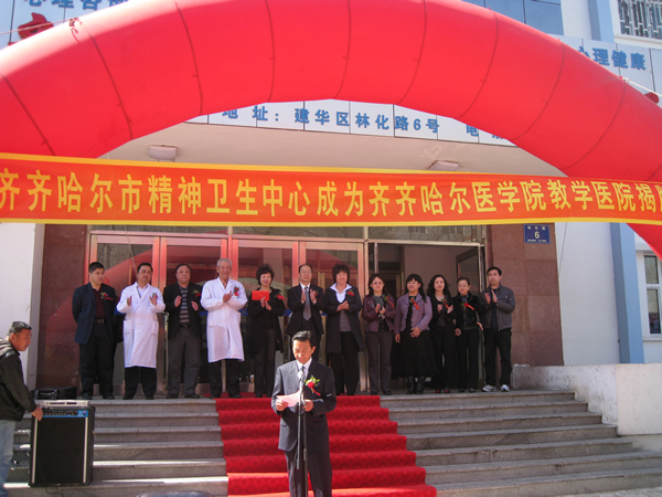 仪式由齐市精神卫生中心院长陈万春主持。齐市第一医院院长曹书杰发表讲话,介绍了中心的发展与变化,表达了广大职工积极参与精神医学教学及与学院进行合作的美好愿望,祝愿双方通过教学合作实现共同进步。学院副院长崔光成在挂牌仪式上致辞,代表学院欢迎齐市精神卫生中心成为我院教学医院,并对中心未来的发展充满信心。崔院长总结回顾了我院精神医学专业的发展历程及取得的辉煌成绩。他指出,齐市精神卫生中心成为我院临床教学基地的新成员,必将对我院精神医学专业的发展与建设起到积极的推动作用。