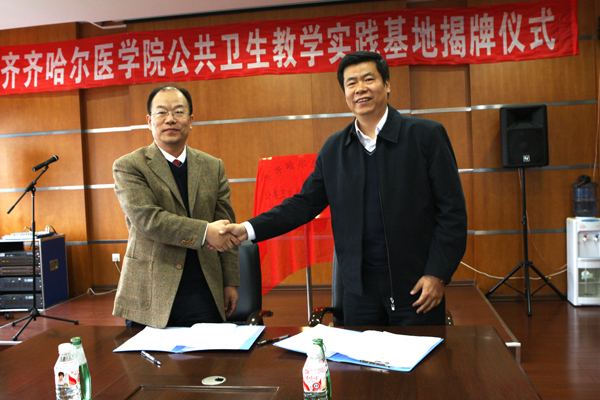 2010年5月6日上午,学院副院长崔光成及教务处、公共卫生学院部门领导一行5 人,参加了哈尔滨市疾病预防控制中心成为我院预防医学专业教学实践基地的揭牌仪式。哈尔滨市卫生局副局长刘明烈、哈尔滨市疾病预防控制中心领导等出席仪式。仪式由哈尔滨市疾病预防控制中心党委书记王健主持。