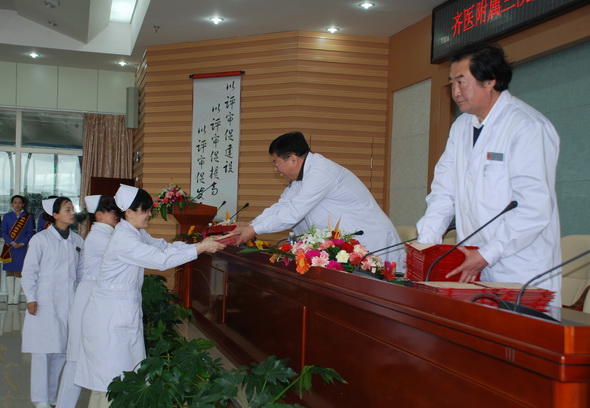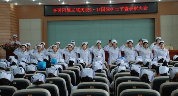 为庆祝第98个国际护士节,弘扬南丁格尔精神,学院附属医院召开了5•12国际护士节庆祝表彰大会,向辛勤工作在护理岗位上的全体护士表达了节日的祝贺,表彰了在护理工作中作出突出贡献的护理人员,并对新护士举行了授帽仪式。