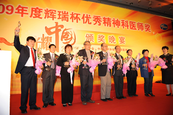 2010年4月24日,2009年度辉瑞杯优秀精神科医师奖颁奖大会在天津举行。在颁奖大会上,我院83级神经精神医学专业优秀毕业生、现任哈尔滨市第一专科医院院长张聪沛同志等10位精神科医师荣获由中国医师协会精神科医师分会(CPA)颁发的2009年度辉瑞杯优秀精神科医师奖。据悉,此项奖励是由中国医师协会精神科医师分会(CPA)组织评定授予的最高奖项,获奖者多为国内知名精神科专家教授,其中包括中国科学院院士。(院办2010年5月24日供稿) 我院校友张聪沛(左一)上台领奖 我院校友张聪沛与颁奖嘉宾
