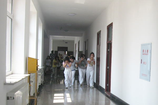 为进一步强化师生消防安全意识,提高师生抗击突发事件的应变能力,6月8日下午,公寓服务中心在基础医学院辅导办与保卫处的协助下,组织学生进行了消防逃生演练。为保证演练的顺利进行,公寓服务中心认真制定演练计划和演练方案,布置周密,演练有序,达到了预期效果,使师生受到了安全防火知识教育,掌握了火灾逃生的方法和技能,为师生人身安全提供了有力保障。(后勤服务总公司2010年6月9日供稿) 演练中学生迅速离开火灾现场 学生掌握火灾基本逃生技能