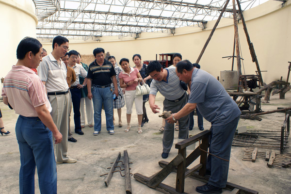 学院党委书记邱福利等参观兴十四村人创业初使用的劳动工具