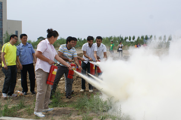 讲座伊始,外事处副处长丛喜权便对此次活动做了明确要求,随后外事处辛丹老师就起火原因、扑救方法、逃生技能和预防警示等进行了详细讲解,保卫处郭老师现场演示了灭火器的使用方法,最后,保卫处副处长尚天歌再次强调了消防安全的重要性,并祝愿全体外籍教师和留学生在学院生活愉快,学业有成。讲座结束后,全体外籍师生进行了灭火演练及逃生演练。