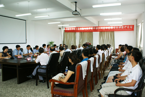 论坛期间,学院科技处处长李静平代表学院作科研工作报告,三所附属医院代表先后在泌尿外科、介入治疗、胰腺胆道疾病的内镜治疗等医疗领域作了科研报告,俄方代表作了《慢性阻塞性肺病门诊康复治疗》、《黄豆活性物质的医学应用》、《寒冷气候条件下肺部器官形态的研究》和《低位直肠癌切除手术》科研报告,双方科研报告中的医疗技术均达到了国际先进水平,通过深入地讨论交流,推动了学院与阿穆尔州医学院科研及医疗技术的进一步发展。随后,双方代表在教学、科研、医疗方面进行了洽谈,形成了初步合作意向,为双方建立长期友好的合作关系打下了良好基础。