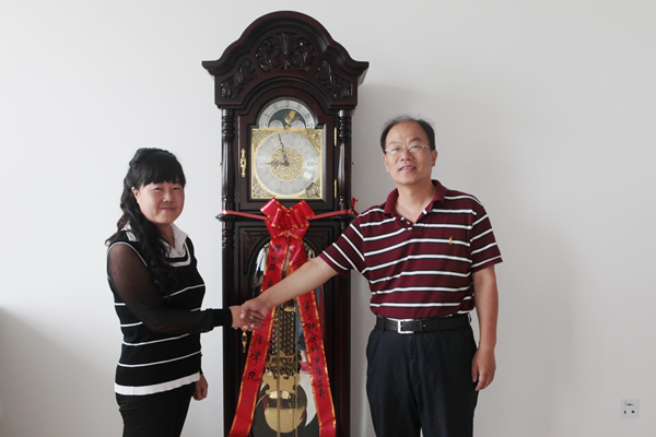 8月29日上午,4名2010年第三期乡村医生毕业学员代表将承载着488名学员心声的实木机械落地钟赠送给学院,希望通过这份礼物表达对母校和老师的由“钟”感谢和 “钟”心祝福。学院领导崔光成代表学院接受了馈赠,感谢学员们对母校的热爱,并勉励他们扎根基层、服务三农。崔院长表示,学院将密切关注乡村医生们的发展,并为他们提供力所能及的指导和帮助。 学院领导崔光成代表学院接受馈赠 学院领导、成教学院领导和教师与乡医代表合影
