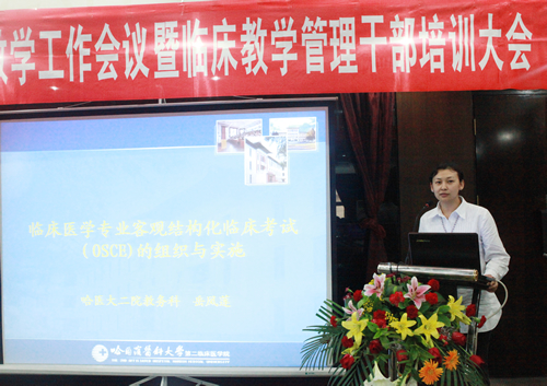 哈尔滨医科大学附属第二医院教务科科长岳凤莲作报告