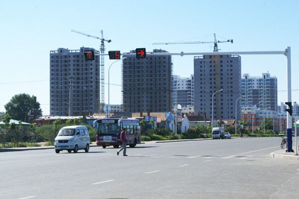 今日过往车辆在红灯下等待通行