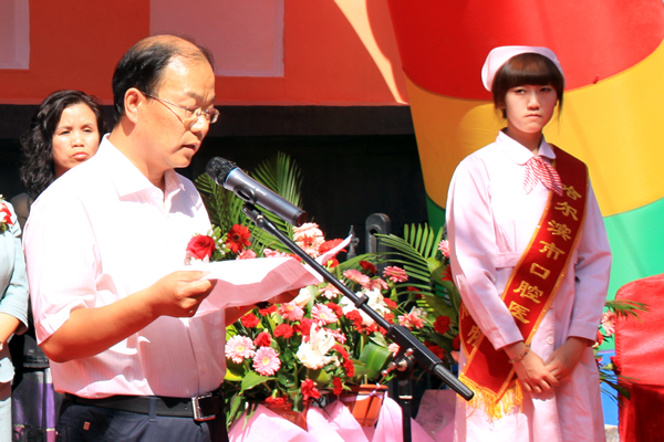 9月9日上午,哈尔滨市口腔医院成为我院口腔医学专业教学医院揭牌仪式在哈隆重举行。学院副院长崔光成率教务处、基础医学院领导等一行5 人与哈尔滨市卫生局副局长董强、卫生局科教处处长刘卓英、哈尔滨市口腔医院领导、中层干部共同出席了揭牌仪式。仪式由哈尔滨市口腔医院党委书记李玉东主持。省电视台、黑龙江晨报等媒体对此进行了报道。