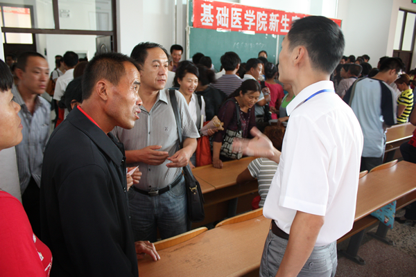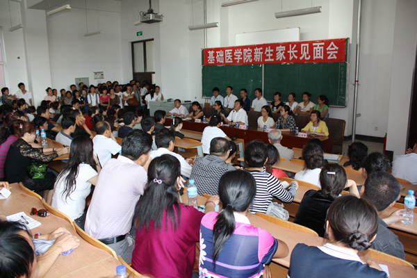 基础医学院是我院招生人数最多的院系,今年招生约1300人,创下历史新高。为探索学校与家长的长效互动机制,创建合力育人平台,共同促进学生全面发展,2010年9月11日下午,基础医学院召开了2010级新生家长见面会。基础医学院领导胡亚凡、李涛、高音等与全体2010级新生班主任及300多名新生家长和新生参加了此次见面会。会议由书记胡亚凡主持。见面会上,基础医学院领导和相关人员分别向新生及家长就学院概况、专业与方向、学生日常管理、学籍管理、弹性学制等方面进行了细致说明。并同与会的新生家长就关心的问题进行了交流和研讨。