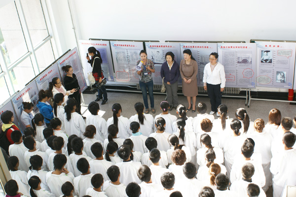 本次图片展历经近一个月的精心准备,由齐齐哈尔市博物馆提供展板及专业讲解员为近400名大一新生上了一堂生动的爱国主义教育课。讲解员围绕图片故事,讲述了79年前抗日先烈们的英雄事迹,唤醒了广大学生对这段历史的回忆,在学生内心深处掀起了强烈的波澜。展览过后,学生们纷纷在“铭记历史 勿忘国耻”的横幅上签字,一名学生在接受采访时表示,作为当代大学生既要铭记历史、缅怀先烈,更要珍惜来之不易的和平,要努力学习文化知识,为祖国的繁荣发展贡献自己的力量。市博物馆及医学技术学院的各位领导也热情参与了此次签名活动。