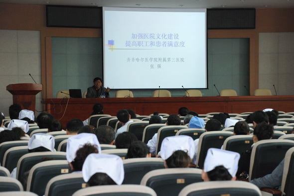 张强从医院文化的概念、建设的误区、以人为本的医院文化、建设以人为本医院文化的必要性、医院文化内容等方面,详细阐述了医院文化建设的重要意义及其积极影响。张强说,以人为本的医院文化核心就是树立以人为本的价值观。他说,知识经济时代员工的素质是医院存在和发展的决定因素之一,促进人的全面发展是医院文化建设的目的。张强希望大家进一步增强学习的责任感、紧迫感和使命感,切实提高医院文化建设水平,把医院建设成为鹤城医疗领域里的一面旗帜,为跻身黑龙江省医疗卫生事业的先进行列提供坚强保障。