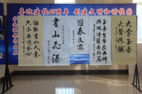 10月28日,由学院工会和党委宣传部联合举办的喜迎建校65周年书画、摄影、征文作品展在图书办公楼一楼大厅正式举行。学院领导在作品展出当日即参观了展览,并对此次展出的书画、摄影作品给予了高度评价。