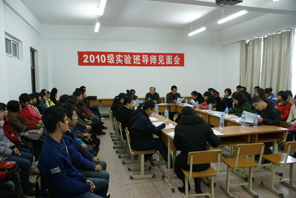 为更好地开展2010级本科实验班教学工作,10月27日,学院组织2010级本科实验班学生与导师进行了见面交流。学院副院长崔光成到会并作重要讲话,教务处、学工部相关人员和2010级实验班全体导师参加了会议。见面会由教务处副处长云长海主持。