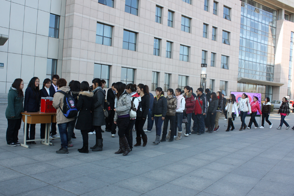 11月3日,精神卫生学院“一天一角钱”爱心捐助活动启动仪式在大医广场举行。精神卫生学院团总支书记文丽波在仪式上号召广大学生每天省下一角钱,聚沙成塔,帮助我院生活困难学生。参加仪式的教师及学生纷纷伸出援助之手,并在代表爱心的条幅上签字。
