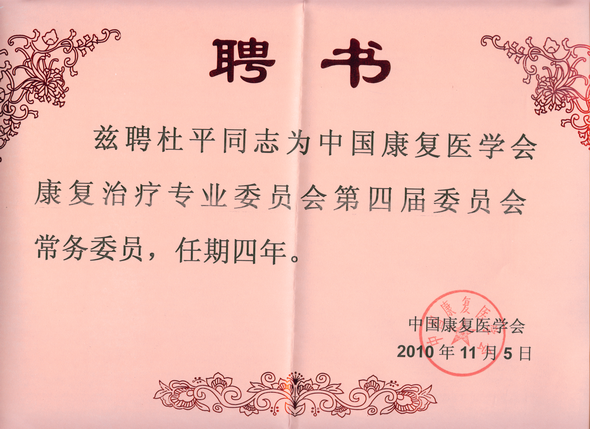 11月5日至7日在广西南宁召开的中国康复医学会康复治疗专业委员会第四届会议上,附属三院康复科主任、主任医师杜平当选为常务委员,成为我省唯一一名当选国家级康复专业委员会常委的专家。 杜平主任从医30余年,为我院康复医学的发展做出了突出贡献。她擅长运用关节松动手法治疗颈椎病、腰椎间盘突出等症。在运用闭合性骨折的手法整复骨伤后遗症和应用PT、OT、ST针灸等方法治疗中风后遗症、面瘫、坐骨神经痛等方面取得了显著成绩。 (附属三院2010年11月10日供稿)