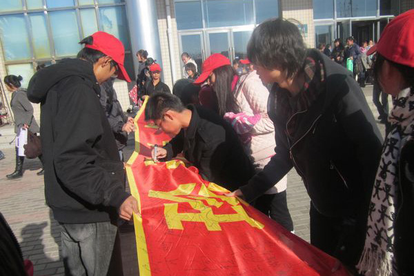 组织安全知识竞赛的同时,志愿者又于当日中午在春华城前举行了主题为“拒绝火灾、珍爱生命”的签名仪式,百余名学生参加了签名活动。