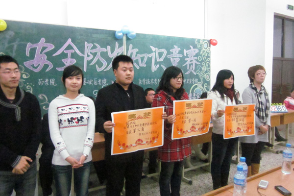 为贯彻落实黑龙江省教育厅关于创建“平安校园”的有关精神,11月9日全国消防日当天,学院团委组织我院志愿者举办了大学生安全防火知识竞赛。赛前特邀保卫处副处长蔡智伟就当前防火形势和安全工作的重要性对学生进行了安全知识讲座。比赛设置了抢答、必答、判断、案例分析等多种形式,内容丰富,环环紧扣。经过激烈角逐,基础医学院代表队获得冠军,医学技术学院代表队和药学院代表队分获第二、第三名。