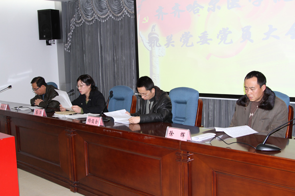 12月1日,机关党委全体党员大会在图书行政楼1801会议室如期召开。会上,机关党委书记高萍代表上一届机关党委作了工作报告,总结了成绩,指出了不足。随后,大会按照《关于做好院本部基层党组织换届改选的通知》文件精神,从6个机关党委委员候选人中选举产生了新一届机关党委委员。新一届机关党委由高萍、李忠原、杨俊全、云长海、徐辉组成,高萍同志担任机关党委书记。(机关党委2010年12月1日供稿) 会议现场 新一届机关党委委员候选人 党员投票