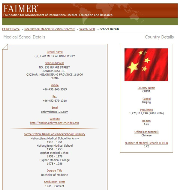 我院详细信息在美国外国医学毕业生教育委员会官方网站备案