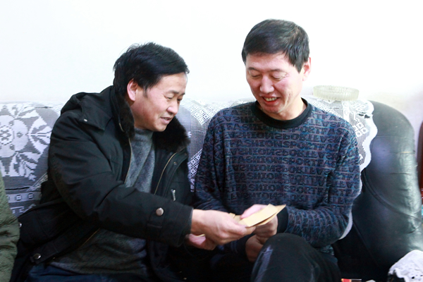 新春佳节临近之际,学院工会主席谭忠汉、副主席宋耀鑫冒着严寒,对院本部和附属医院的患病职工进行了走访慰问,并为他们送去了慰问金与新春祝福。每到一处,谭主席一行都与患病职工亲切交谈,详细询问他们的生活和治疗情况,并鼓励他们以积极乐观的心态战胜疾病,渡过难关。亲切的话语、真挚的祝福让患病职工深切地感受到了齐医大家庭的温暖。 学院工会主席谭忠汉代表学院为患病职工送去慰问金 学院工会领导一行与职工亲切交谈 学院工会领导一行询问职工用药情况 学院工会领导一行鼓励职工战胜困难
