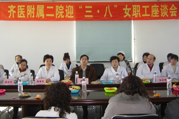 3月7日下午,附属二院召开了迎“三•八”女职工座谈会,医院领导班子与女职工代表齐聚一堂,畅心交谈。附属二院党委书记关维、院长张淑英对医院女职工所取得的成绩给予了充分肯定和衷心祝贺,希望女职工们戒骄戒躁,继续努力,积极发扬“自尊、自信、自立、自强”的精神,热爱生活、锐意进取,再立新功。女职工代表也在会上积极发言,她们以自身的奋斗历程和所取得的骄人业绩,充分展示了新时代女性与时俱进的创新理念和不断开拓进取的奋斗精神。