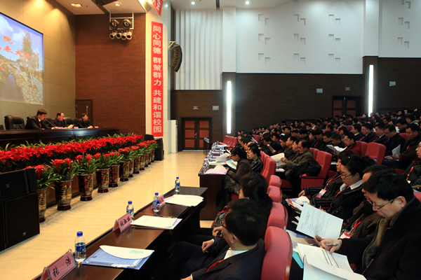 会上,院长刘吉成作了题为《群策群力谋发展,提升内涵重质量;科学规划揽全局,狠抓落实开新篇》的工作报告。报告客观全面地总结了2010年工作,并对2011年工作进行了科学务实的部署。报告通过一组组数字对比,一个个目标实现,充分说明了“十一五”时期是建院以来发展最好最快的五年。同时,2010年是学院大建设、大发展的重要时期,制定并出台了指引发展方向的“十二五”发展规划,新校区基本建设实现了校园建设和内涵发展两不误的目标,人才培养质量显著提升,附属医院综合实力继续增强,科研工作快速发展,社会服务能力不断提升,师资队伍结构全面改善,对外合作办学领域不断拓宽,图书、期刊、信息建设再上新台阶,行政管理效能明显提升。