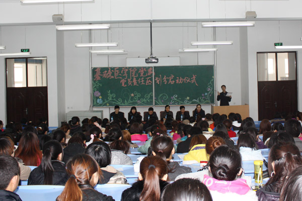 讯一:3月17日,基础医学院党委党员责任区划分启动仪式正式举行。基础医学院党委书记胡亚凡出席启动仪式,她希望全体党员在“党员责任区”这个舞台上创造性地开展工作,树立良好形象,展示青春风采,努力做一名素质过硬、服务到位的好党员,为学院的各项工作做出自己应有的贡献,谱写出更加壮丽的党员先进性之歌!学生代表和教师代表也分别作了表态发言。该活动明确了教职工和学生党员责任区,通过党员主动联系、管理并服务于责任区内的师生,切实完成责任区内思想育人、管理育人、服务育人等各项工作,进而促进优良教风、学风的形成。