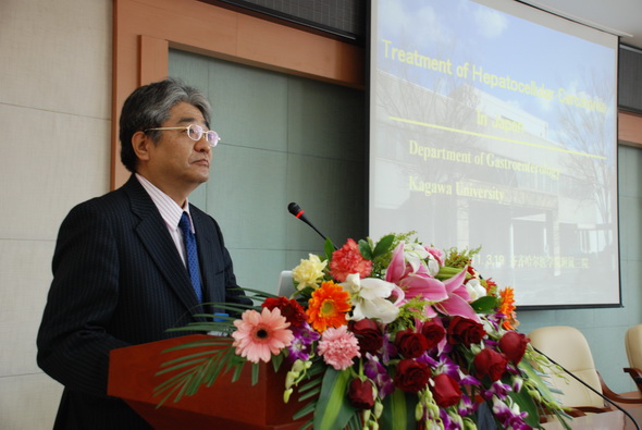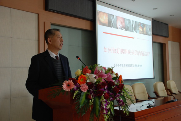 正木勉教授以《日本肝癌的诊断和治疗》为题,和齐市医学专家进行了学术交流。正木勉教授现任日本内科学会认定医、指导医等职,研究课题主要有病毒性肝炎、肝癌的诊断与治疗、肝癌的基因表达以及抑癌基因的研究、细胞周期关联基因的解析等。附属三院消化一科陈尔东主任在会上作了《如何做好胰腺胆道疾病的内镜治疗》学术报告。作为齐市消化治疗技术的领跑者,附属三院消化科在进行常规的胃肠内镜诊断和息肉电切、异物取出、镜下止血、胃肠置管基础上,重点开展了各种胃肠道支架的置入术,以解除胃肠道的恶性梗阻,特别是近年来开展的紧急内镜下套扎止血术,挽救了很多患者的生命,是齐市唯一能独立完成此项技术的科室。此次讲座为期一天,讲座过程中进行了答疑及考试。