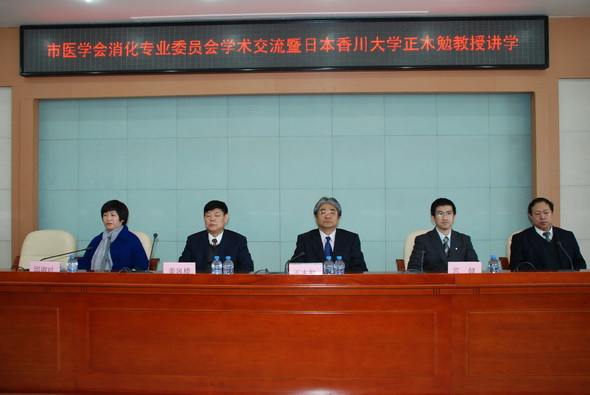 3月19日上午,由齐市医学会主办、附属三院承办的市消化专业委员会学术交流暨继续医学教育讲座在附属三院如期举行。此次讲座特邀日本香川大学医学部消化器、神经内科学教授正木勉、齐市医学会消化内科专业委员会副主任委员、附属三院消化一科主任陈尔东以及市第一医院消化科专家张继东担任主讲,学院副院长姜凤楼、齐市医学会秘书长邱淑叶出席交流会并发表讲话,来自全市的相关医学专家听取了讲座。