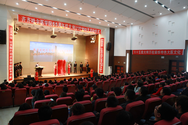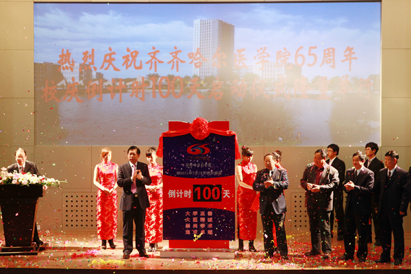 2011年4月7日15时,齐齐哈尔医学院65周年校庆倒计时100天启动仪式隆重举行。学院党委书记邱福利、院长刘吉成共同为65周年校庆倒计时牌揭幕,为校庆筹备工作进入冲刺攻坚阶段吹响了先锋号角,向全院师生发出了“人人关心学院,人人参与校庆”的倡议。仪式由学院副院长崔光成主持,学院领导班子全体成员、院本部副科级以上干部、各附属医院党委书记、分管教学工作副院长和近300名学生代表参加了启动仪式。