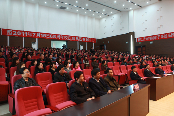仪式上,院长刘吉成致开幕词。他说,65周年校庆是回顾学院历史,展示办学成就,展望美好未来,激励师生、校友爱校荣校精神,感谢多年来给予学院大力支持和帮助的领导和社会各界人士的意义深远的重大活动,希望全院师生增强主人翁责任感、使命感、荣誉感和紧迫感,以“高品位的庆典大会、高水平的学术活动、高格调的展示宣传、高质量的组织接待、高融洽的校园氛围”为目标,齐心协力举办一个具有时代特色、体现大学文化、简朴大方、鼓舞士气的校庆。教师和学生代表也在仪式上发言,表示要积极投身校庆工作,以实际行动为学院65岁华诞献礼。
