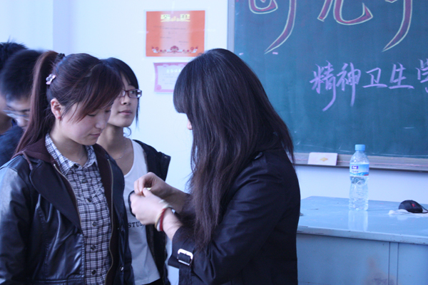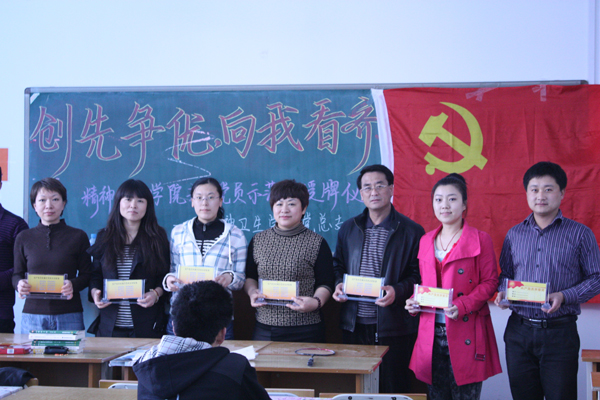 4月8日,精神卫生学院党总支组织全院师生党员举行了“创先争优,向我看齐”党员示范岗授牌仪式。精神卫生学院党总支书记王玉花、院长李荐中为全体教师党员授发了“党员示范岗”标志牌,各党支部书记为支部党员代表佩戴了党的徽章。