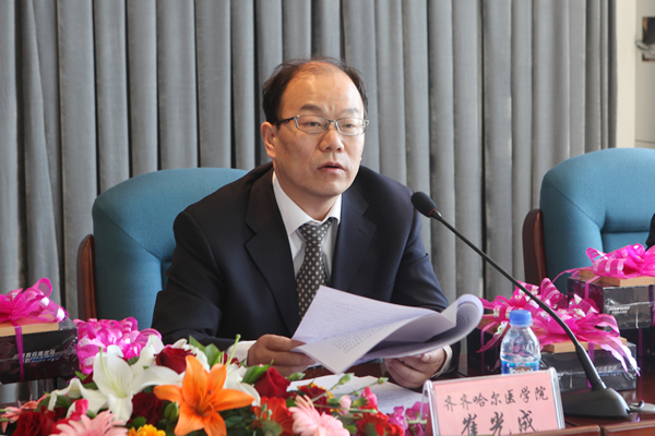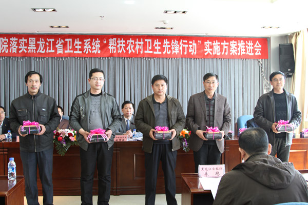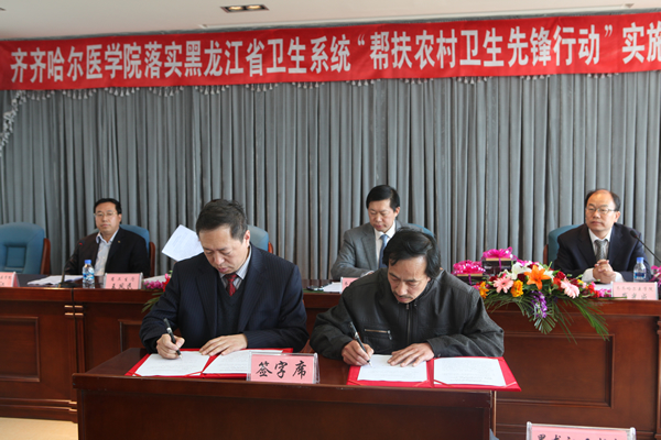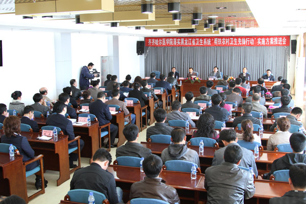为落实省卫生厅“帮扶农村卫生先锋行动”实施方案,深入开展创先争优活动,为地方卫生事业发展多做贡献,4月9日,学院召开了“帮扶农村卫生先锋行动” 实施方案推进会。省卫生厅医管处处长王凤民、学院院长刘吉成参加会议并分别致辞,深刻阐述了本次帮扶工作对不断提升农村卫生服务能力和推进农村医药卫生体制改革的重大意义,表达了卫生厅对学院的信任和学院高质量完成帮扶任务的决心。学院副院长崔光成宣读了《齐齐哈尔医学院暨附属医院“帮扶农村卫生先锋行动”实施方案》,附属医院帮扶人代表与帮扶对象代表签订了帮扶合同,并向帮扶对象赠送了书籍等物品。帮扶人代表、附属一院院长张嘉伟和帮扶对象代表、龙江县哈拉海乡卫生院院长李永生也在会上发言。