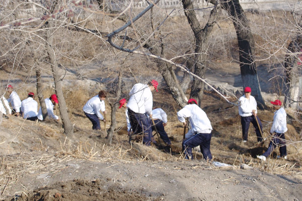 我院志愿者和学生干部负责在龙沙公园三号门附近的山上挖掘共计120余个树坑。此处山坡陡峭,地下满是树根、杂草和建筑瓦砾,劳动强度很大,任务十分艰巨,但参加活动的学生不畏困难,主动承担最为艰难的任务,用两个小时的时间出色完成了工作任务,并顺利通过公园工作人员的验收。此次活动在为我市绿化工作做出贡献的同时,也作为一次社会实践机会,强化了我院学生奉献社会、提升自己的志愿者服务理念。