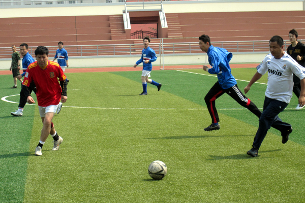 5月7日,在学院工会、保卫处和体育部共同组织下,学院教工足球队与来访的建华区消防大队足球队在体育场进行了一场精彩的足球友谊赛。此前,两队之间有过多次交锋,而且实力相当,所以比赛进行的异常激烈。最终我院教工足球队取得了比赛的胜利。足球传递友谊 比赛促进和谐。通过比赛,推动了教职工群众体育活动的开展,增进了学院与共建单位的沟通与交流,加强了地方与学院的和谐共建。(工会2011年5月9日供稿) 比赛现场 参赛队员合影