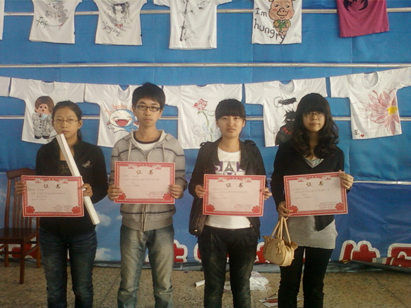 此次大赛分为板报设计、书法比赛、绘画比赛和DIY-T恤创作四部分。参赛选手用一幅幅书画作品表达了对母校的热爱和祝福,他们的火热激情和精彩创意吸引了众多观众驻足观看,比赛现场书墨飘香。经过激烈角逐,医学技术学院代表队获得板报设计组一等奖,药学院刘生望和吴坤同学分别获得书法组和绘画组冠军。