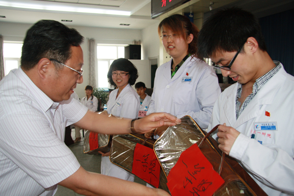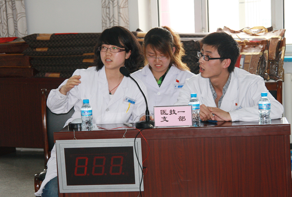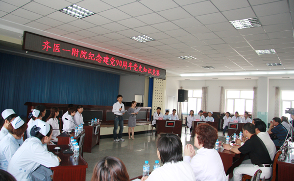 5月30日,一附院“重温党的光辉历程,颂扬党的丰功伟绩”庆祝建党90周年知识竞赛圆满落幕,医技一支部获得一等奖,医技二支部、联合支部获得二等奖,外科支部、机关一支部、五官支部获得三等奖。医院领导为获得各奖项的选手颁发了奖品。全体党员、积极分子观看了比赛。党委书记郭金城在讲话中希望通过知识竞赛,提高党员干部的思想素质,促进学习型党组织建设活动的开展,在各自的工作岗位上发挥先锋模范作用,为促进医院深入开展创先争优活动,提高医院医疗、教学、科研水平,做出自己的贡献。 在纪念中国共产党建党90周年的系列活动中,宣传科、监察科组织了“重温党的光辉历程,颂扬党的丰功伟绩”知识竞赛,分预赛决赛两场比赛,有6支代表队进入决赛。决赛中,选手们超常发挥,竞争激烈,难分伯仲。风险题环节过后,医技支部代表队一路遥遥领先,最终取得了第一名。 (附属一院2011年5月31日供稿) 比赛现场 选手答题 附属一院党委书记郭金城为获得一等奖代表队颁奖
