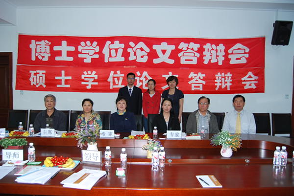 6月1日上午,我院与黑龙江中医药大学联合培养研究生学位论文答辩会在黑龙江中医药大学举行。答辩委员会一致同意刘吉成教授指导的博士研究生崔红霞、硕士研究生李刚通过论文答辩,建议授予其博士和硕士学位,并对两位研究生的论文给予好评。我院院长、博士研究生导师刘吉成教授会后发表了讲话,代表学院感谢黑龙江中医药大学多年来对我院研究生教育工作的支持,同时对通过答辩的研究生表示祝贺。(科技处2011年6月2日供稿) 答辩学生与答辩委员会合影