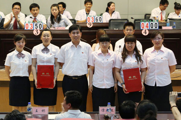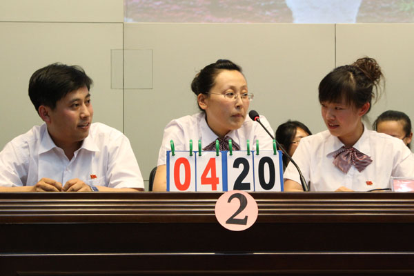 此次比赛是学院庆祝建党90周年、庆祝建校65周年系列活动之一,也是扎实推进学习型党组织建设的一项重要内容,11个基层党委、总支经过初赛选拔,分别派出了由1名委员和2名普通党员组成的代表队,参赛队员个个精神抖擞、斗志昂扬、胸有成竹地进入了赛场。比赛场面异常激烈,经过个人必答题、代表队必答题、抢答题和风险题四个环节的角逐,机关党委、基础医学院党委代表队分别以430分和400分的优异成绩拔得头筹,获得一等奖,附属三院党委、护理学院党总支和公共卫生学院党总支代表队紧随其后荣获二等奖。