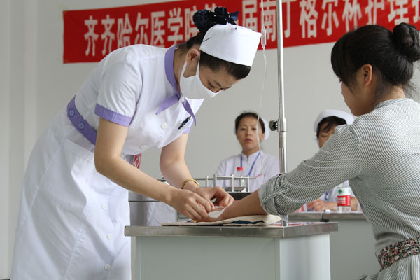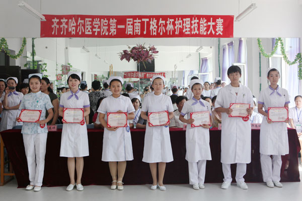 为提高护理人员的技术操作水平和综合能力,推进优质护理服务示范工程的有序开展,向建党90周年和建校65周年献礼,6月17日,学院工会与护理学院联合举办了第一届南丁格尔杯护理技能大赛。学院纪委书记、工会主席谭忠汉、副院长崔光成、工会副主席宋耀新及护理学院和各附属医院相关领导等出席了此次活动。